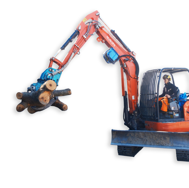 多種多様な重機を自社保有し、林業・特殊伐採から造園・土木まで幅広く対応。