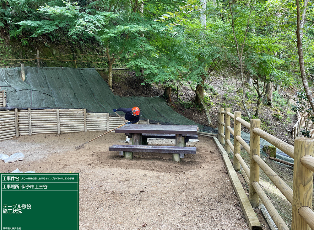 キャンプ場テーブル移設工事